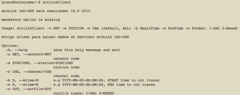 Para baixar dados através do ArcLink, recortando uma janela de tempo para uma ou mais estações.
